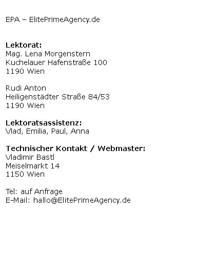 Die durch die Seitenbetreiber erstellten Inhalte und Werke auf diesen Seiten unterliegen dem österreichischen Urheberrecht. Die Vervielfältigung, Bearbeitung, Verbreitung und jede Art der Verwertung außerhalb der Grenzen des Urheberrechtes bedürfen der schriftlichen Zustimmung des jeweiligen Autors bzw. Erstellers. Downloads und Kopien dieser Seite sind nur für den privaten, nicht kommerziellen Gebrauch gestattet. Soweit die Inhalte auf dieser Seite nicht vom Betreiber erstellt wurden, werden die Urheberrechte Dritter beachtet. Insbesondere werden Inhalte Dritter als solche gekennzeichnet. Sollten Sie trotzdem auf eine Urheberrechtsverletzung aufmerksam werden, bitten wir um einen entsprechenden Hinweis. Bei Bekanntwerden von Rechtsverletzungen werden wir derartige Inhalte umgehend entfernen.